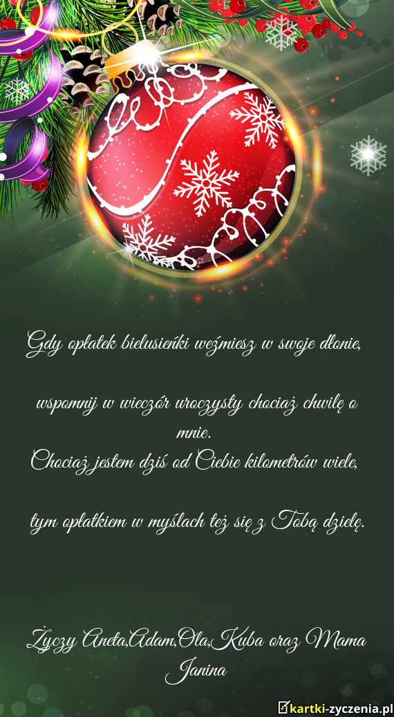Niech magiczna moc wigilijnego wieczoru przyniesie Wam spokój i radość.