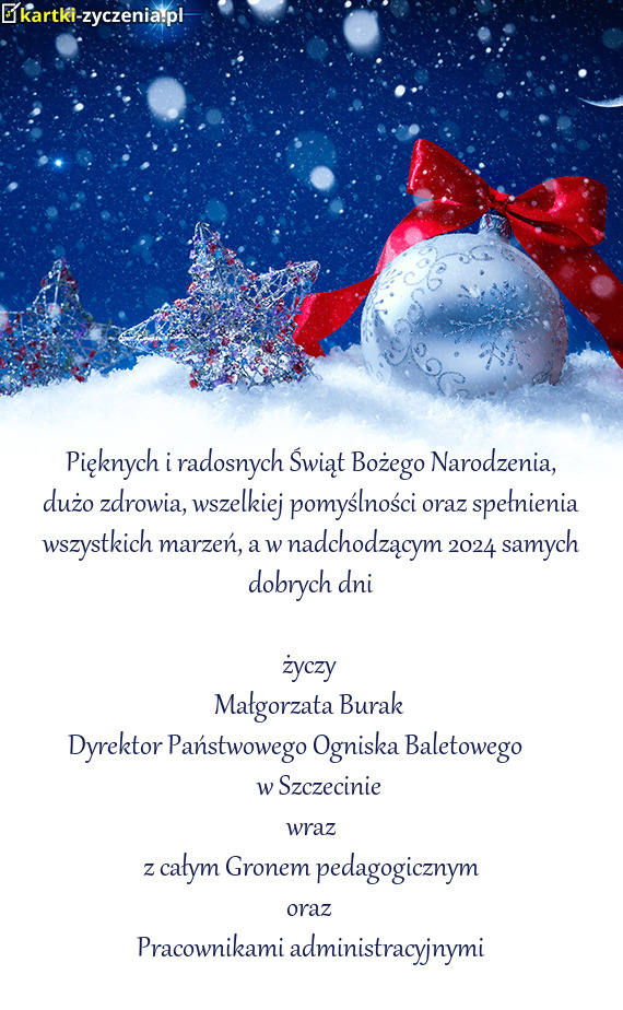 Niech magiczna moc wigilijnego wieczoru przepełni Was radością, spokojem i rodzinną miłością a Nowy Rok przyniósł wszystko co najlepsze.