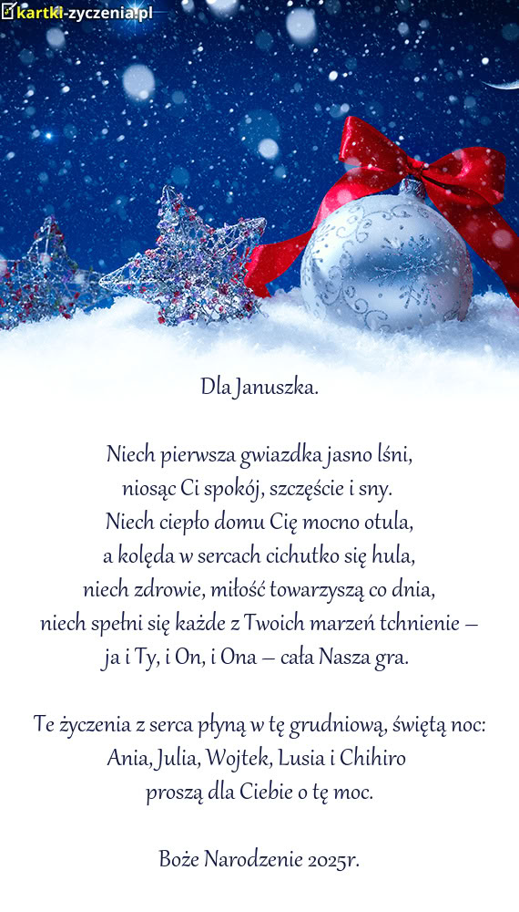 Z okazji Bożego Narodzenia życzę Wam chwil pełnych spokoju, miłości i rodzinnego ciepła. Niech magiczny czas spędzony przy wspólnym stole napełni Wasze serca radością, a nadchodzący Nowy Rok 2026 przyniesie samo zdrowie i spełnienie marzeń.