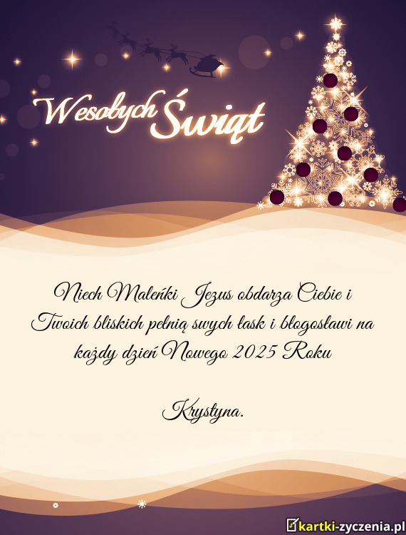 Niech Maleńki Jezus obdarza Ciebie i Twoich bliskich pełnią swych łask i błogosławi na każdy dzień Nowego 2025 Roku