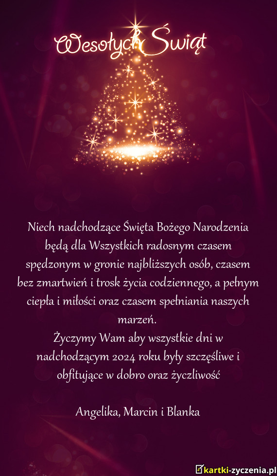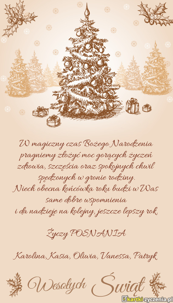 Niech nadchodzące Święta Bożego Narodzenia będą dla Wszystkich radosnym czasem spędzonym w gr - Gotowa Kartka bożonarodzeniowa