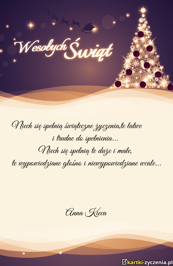Niech się spełnią świąteczne życzenia,te łatwe i trudne do spełnienia - Gotowa Kartka bożonarodzeniowa