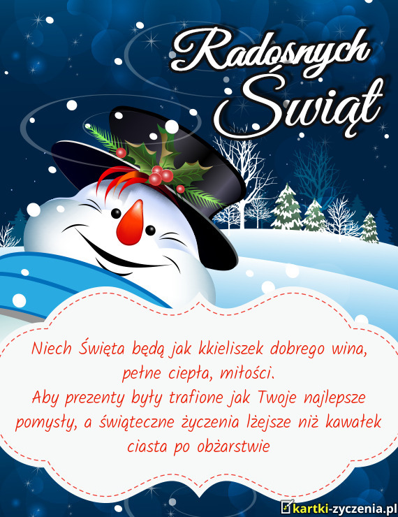 Niech Święta będą jak kkieliszek dobrego wina, pełne ciepła, miłości - Gotowa Kartka bożonarodzeniowa