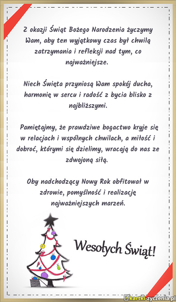 Niech Święta przyniosą Wam spokój ducha, harmonię w sercu i radość z bycia blisko z najbliżs - Gotowa Kartka bożonarodzeniowa