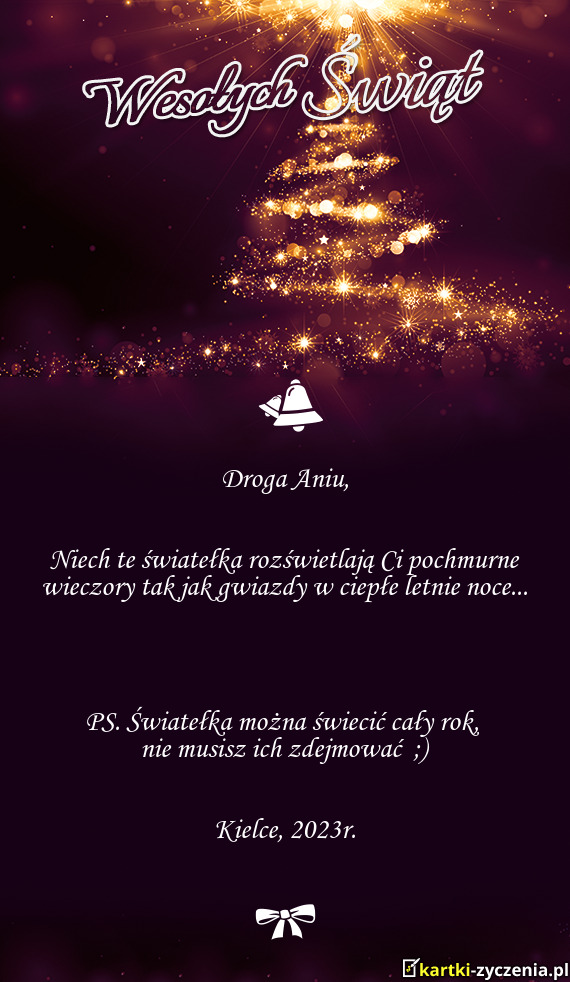Niech te światełka rozświetlają Ci pochmurne wieczory tak jak gwiazdy w ciepłe letnie noce - Gotowa Kartka bożonarodzeniowa