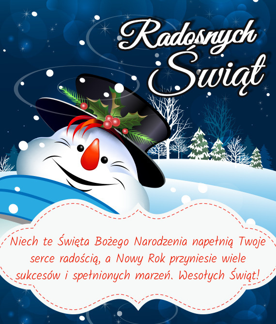 Niech te Święta Bożego Narodzenia napełnią Twoje serce radością, a Nowy Rok przyniesie wiele sukcesów i spełnionych marzeń. Wesołych Świąt!
