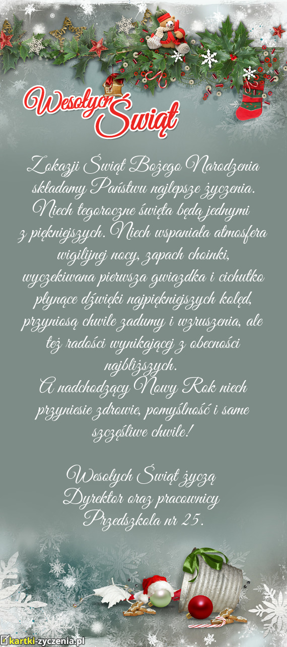 Z okazji Świąt Bożego Narodzenia składamy Państwu najlepsze życzenia.