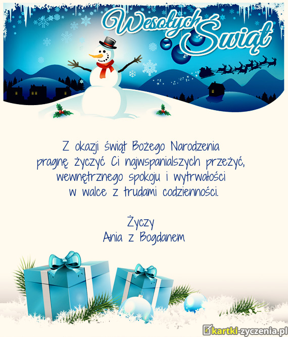 Niech ten czas będzie pełen ciepła - Gotowa Kartka bożonarodzeniowa