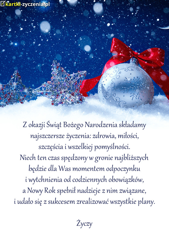 Niech ten czas spędzony w gronie najbliższych będzie dla Was momentem odpoczynku i wytchnieni - Gotowa Kartka bożonarodzeniowa