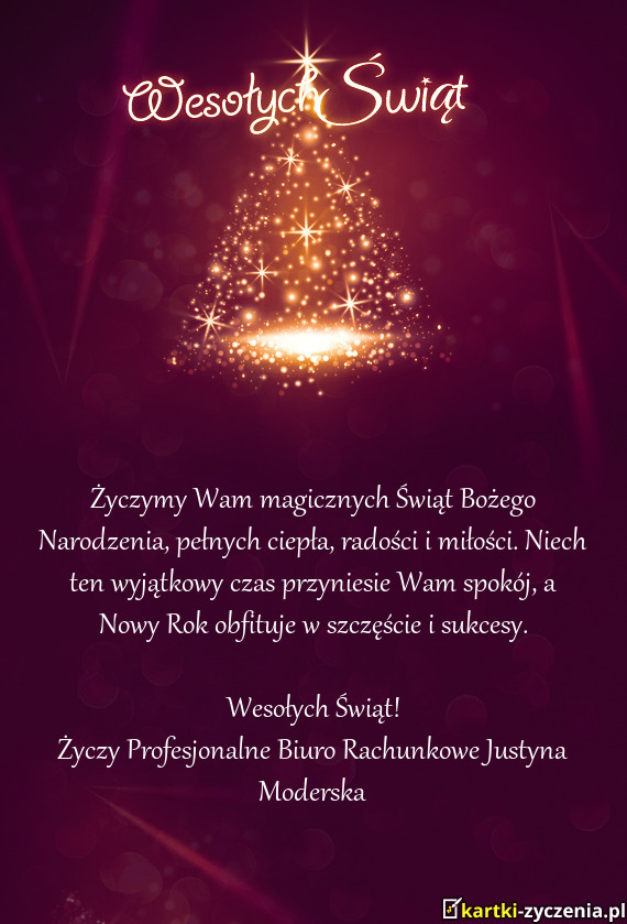 Niech ten magiczny czas przyniesie spokój, odpoczynek i mnóstwo pięknych chwil w gronie najbliższych.