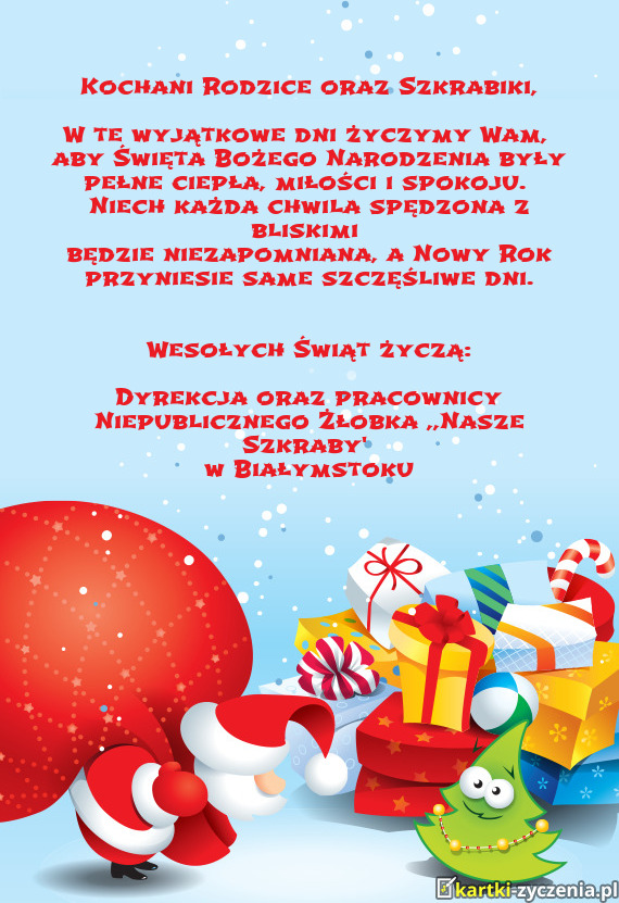 Niech ten świąteczny czas wypełni się pozytywnymi emocjami w gronie najbliższych oraz będzie chwilą wytchnienia od codziennych obowiązków.