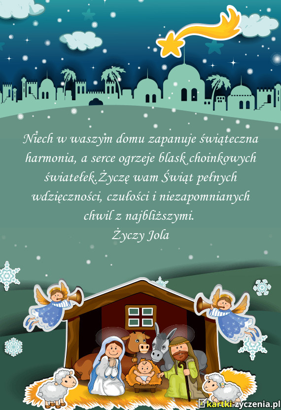 Niech w waszym domu zapanuje świąteczna harmonia, a serce ogrzeje blask choinkowych światełek.Życzę wam Świąt pełnych wdzięczności, czułości i niezapomnianych chwil z najbliższymi.