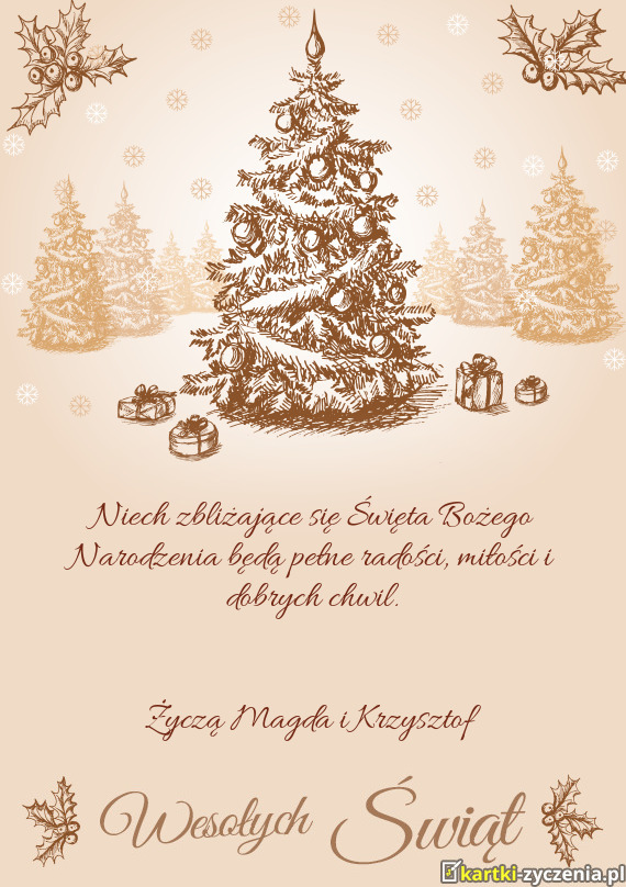 Niech zbliżające się Święta Bożego Narodzenia będą pełne radości, miłości i dobrych chwi - Gotowa Kartka bożonarodzeniowa