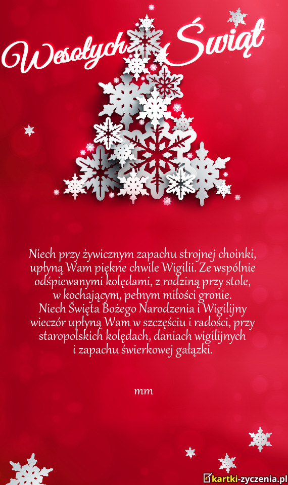 W dniu Bożego Narodzenia pragnę złożyć gorące świąteczne życzenia: szczęścia, dobrego zdrowia, powodzenia.
