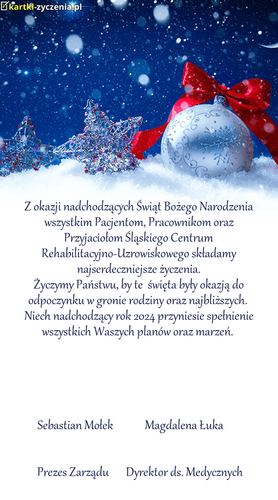 Om Śląskiego Centrum Rehabilitacyjno-Uzrowiskowego składamy najserdeczniejsze życzenia - Gotowa Kartka bożonarodzeniowa
