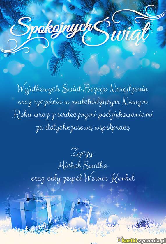 Wyjątkowych Świąt Bożego Narodzenia oraz szczęścia w nadchodzącym Nowym Roku wraz z serdecznymi podziękowaniami za dotychczasową współpracę