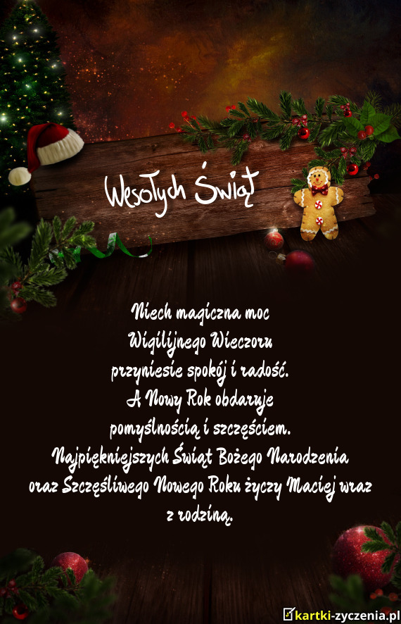 Oraz Szczęśliwego Nowego Roku życzy Maciej wraz z rodziną - Gotowa Kartka bożonarodzeniowa