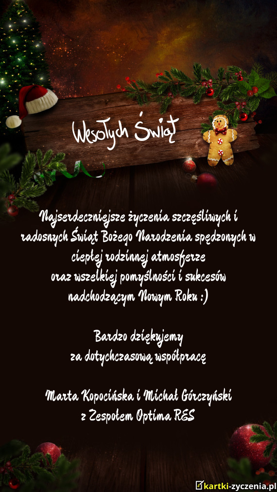 Najserdeczniejsze życzenia szczęśliwych i radosnych Świąt Bożego Narodzenia spędzonych w ciepłej rodzinnej atmosferze