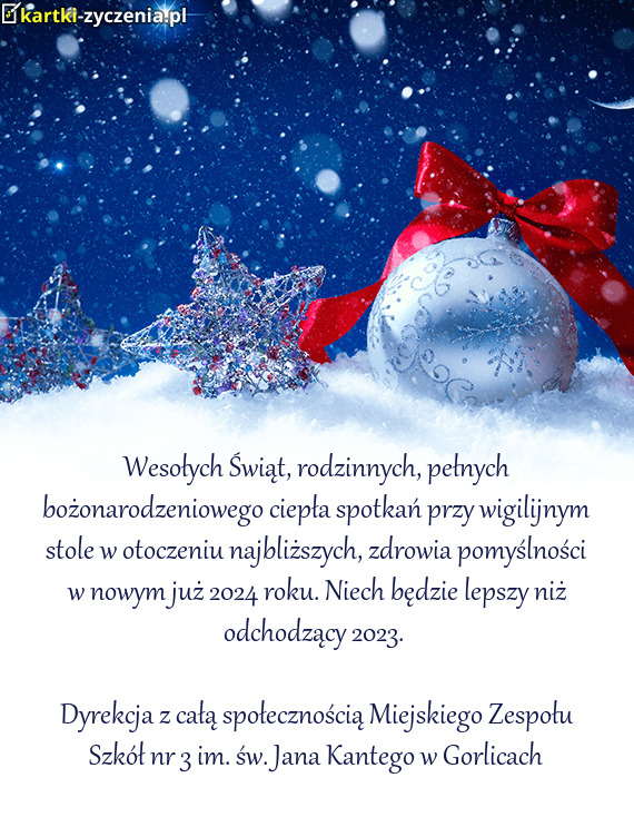 Wesołych Świąt, rodzinnych, pełnych bożonarodzeniowego ciepła spotkań przy wigilijnym stole w otoczeniu najbliższych, zdrowia pomyślności w nowym już 2024 roku. Niech będzie lepszy niż odchodzący 2023.