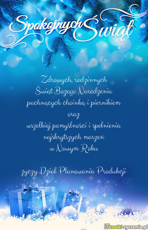 życzy Dział Planowania Produkcji