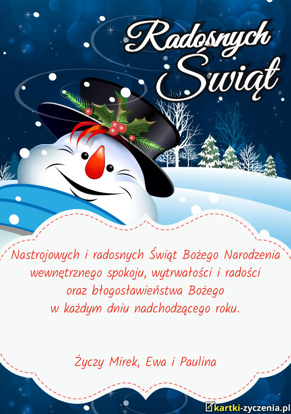 Pełnych ciepła, spokoju i radości Świąt Bożego - Gotowa Kartka bożonarodzeniowa