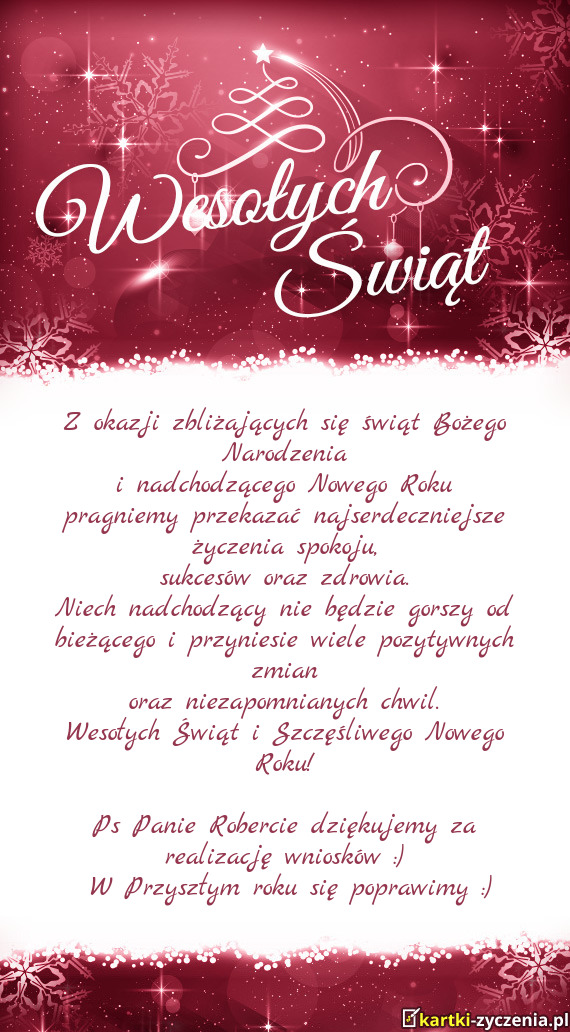 Płynących z Bożego Narodzenia, a także wszelkiego powodzenia w 2025 roku - Gotowa Kartka bożonarodzeniowa