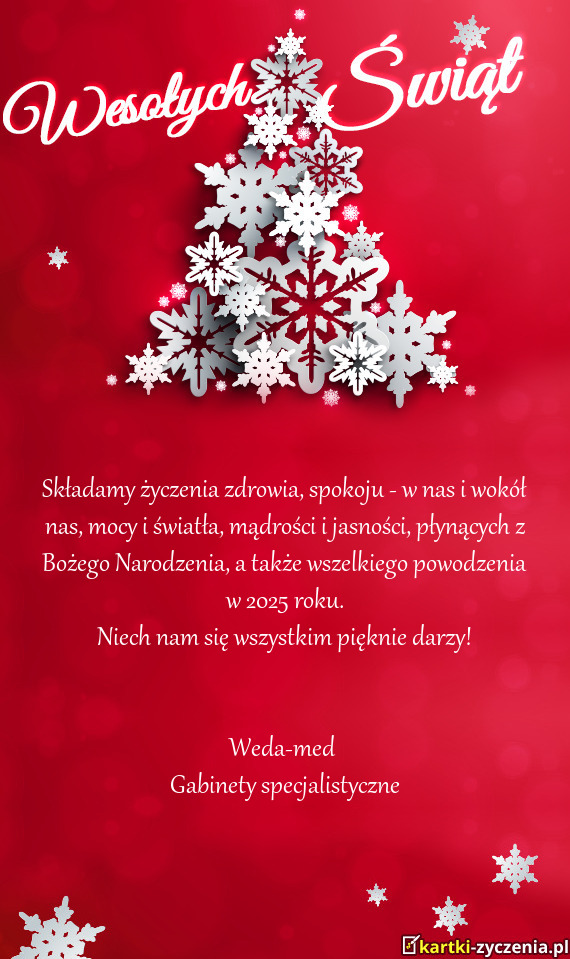 Składamy życzenia zdrowia, spokoju - w nas i wokół nas, mocy i światła, mądrości i jasności, płynących z Bożego Narodzenia, a także wszelkiego powodzenia w 2025 roku.
