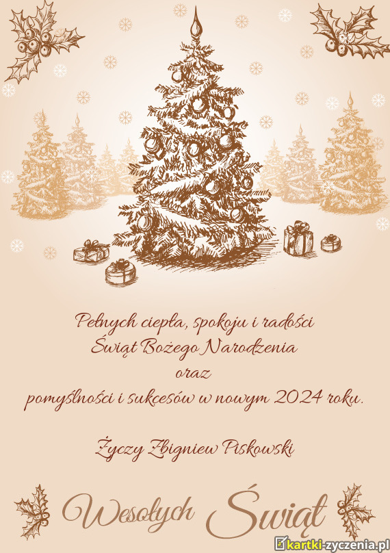 Pomyślności i sukcesów w nowym 2024 roku - Gotowa Kartka bożonarodzeniowa