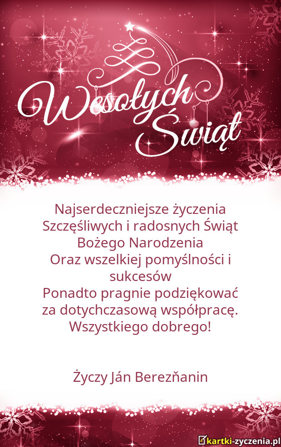 Ponadto pragnie podziękować - Gotowa Kartka bożonarodzeniowa