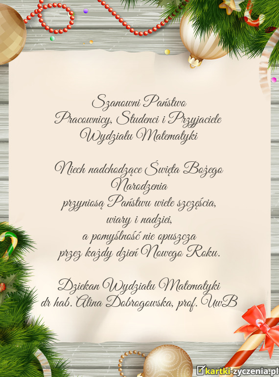 Pracownicy, Studenci i Przyjaciele - Gotowa Kartka bożonarodzeniowa