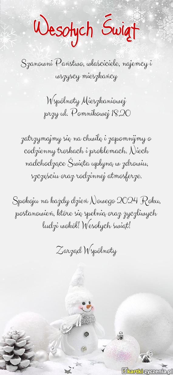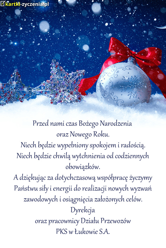 Pragniemy serdecznie podziękować za dotychczasową współpracę i zaufanie - Gotowa Kartka bożonarodzeniowa