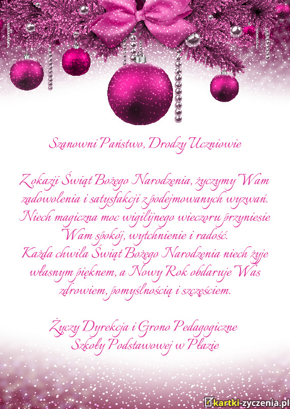 Z okazji Świąt Bożego Narodzenia składamy najszczersze życzenia spokoju, zdrowia i miłości, pragniemy życzyć pełnych radości i spokoju świąt. Niech ten czas będzie pełen ciepła i rodzinnej atmosfery