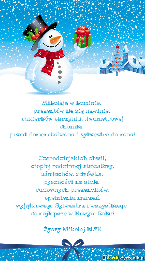 Przed domem bałwana i sylwestra do rana - Gotowa Kartka bożonarodzeniowa