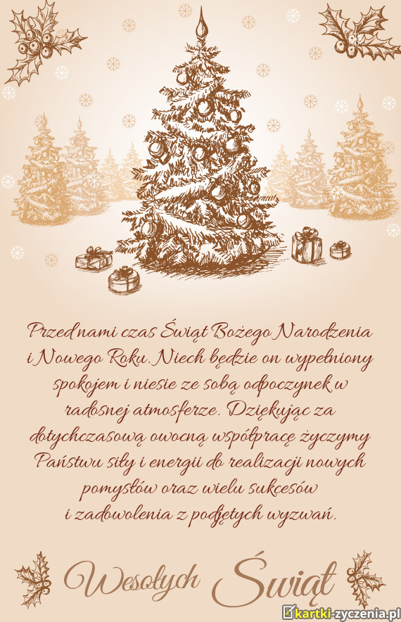 Przed nami czas Świąt Bożego Narodzenia i Nowego Roku. Niech będzie on wypełniony spokojem i ni - Gotowa Kartka bożonarodzeniowa