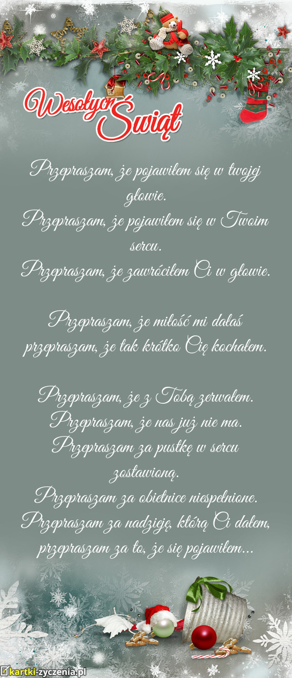 Przepraszam, że pojawiłem się w Twoim sercu - Gotowa Kartka bożonarodzeniowa