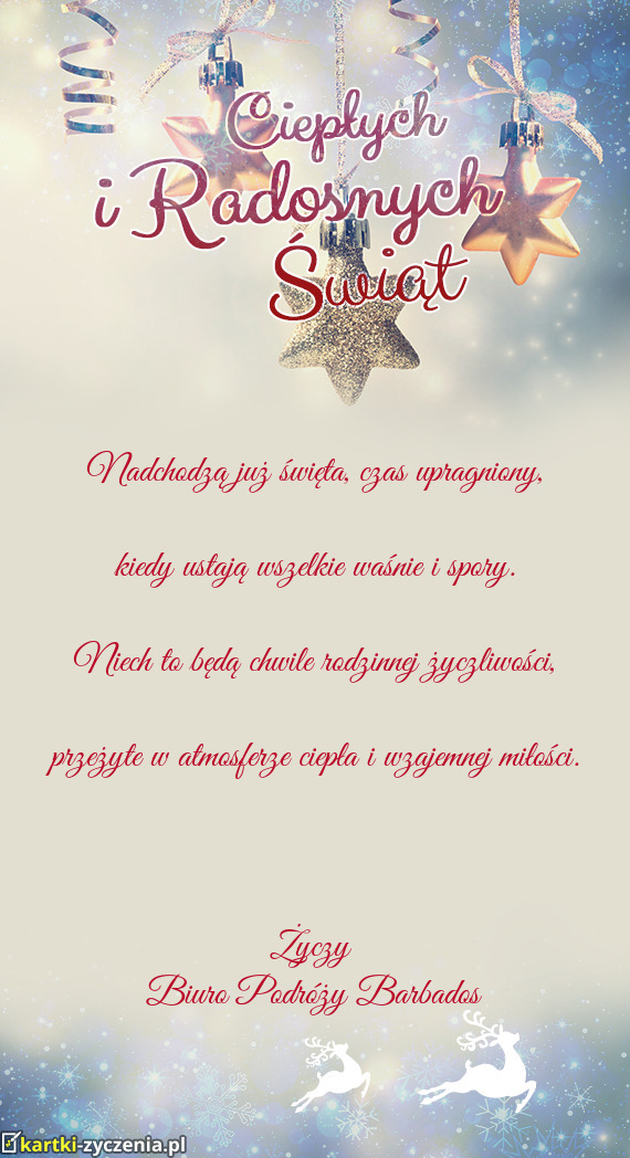 Przeżyte w atmosferze ciepła i wzajemnej miłości - Gotowa Kartka bożonarodzeniowa