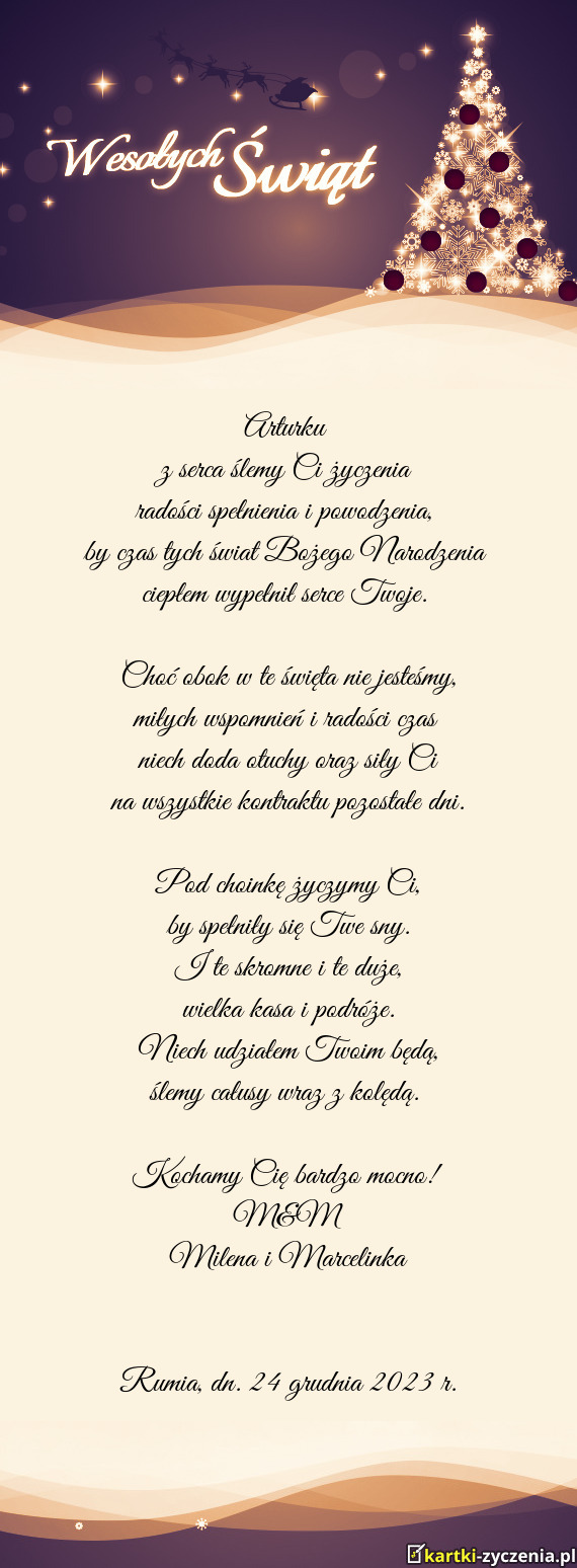 Pod choinkę życzymy Ci,