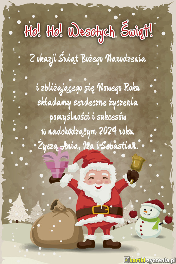 Radosnych i ciepłych Świąt Bożego Narodzenia oraz samych sukcesów w nadchodzącym Nowym Roku - Gotowa Kartka bożonarodzeniowa