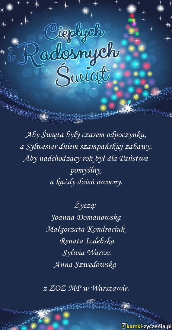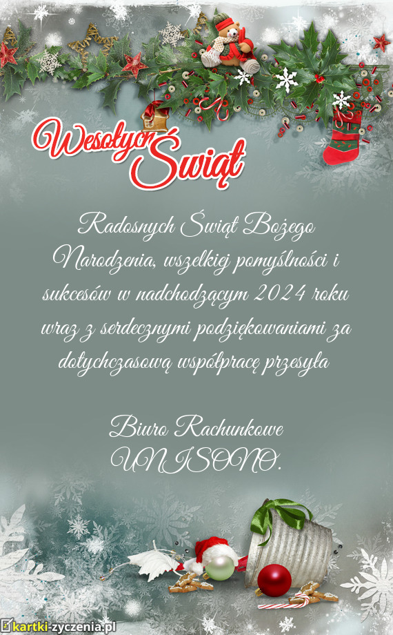 Radosnych Świąt Bożego Narodzenia, wszelkiej pomyślności i sukcesów w nadchodzącym 2024 roku wraz z serdecznymi podziękowaniami za dotychczasową współpracę przesyła