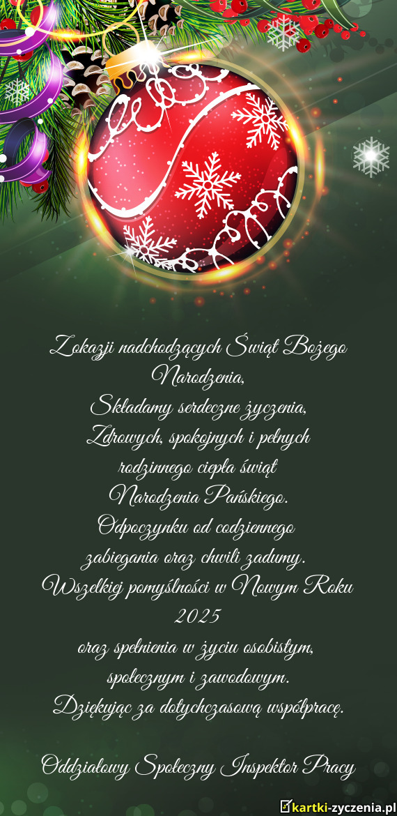 Z okazji nadchodzących Świąt Bożego Narodzenia,