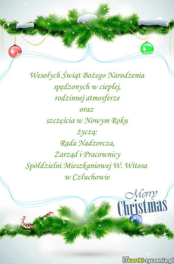 Rodzinnej atmosferze oraz szczęścia w Nowym Roku - Gotowa Kartka bożonarodzeniowa