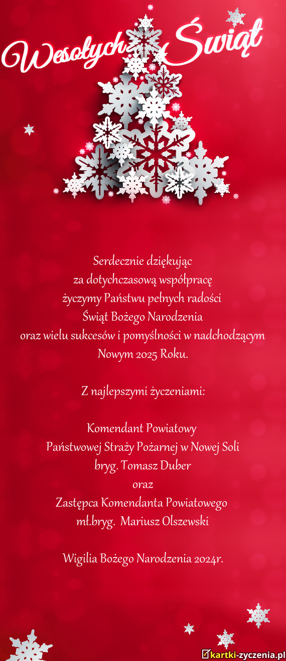 oraz wielu sukcesów i pomyślności w nadchodzącym Nowym 2025 Roku.