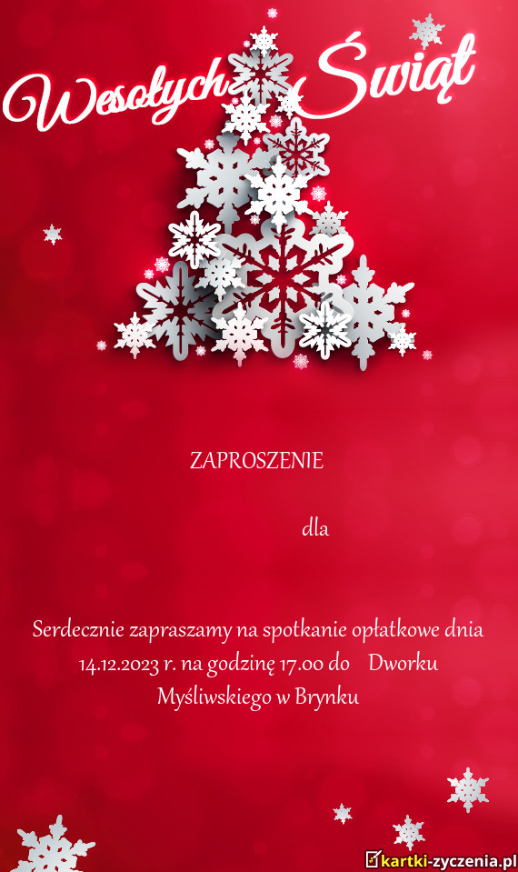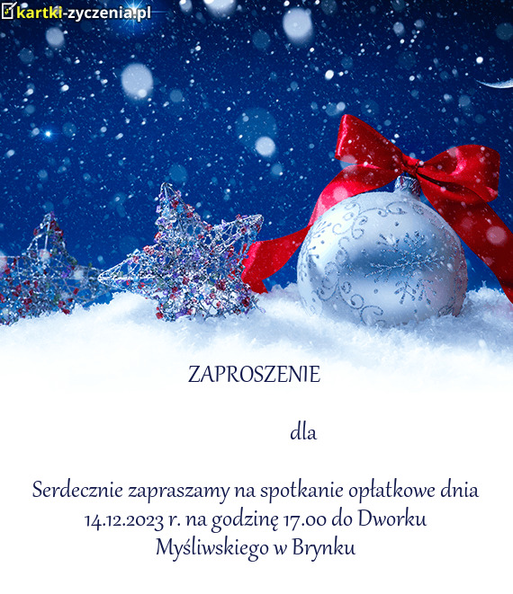 Serdecznie zapraszamy na spotkanie opłatkowe dnia 14.12.2023 r. na godzinę 17.00 do Dworku Myś - Gotowa Kartka bożonarodzeniowa