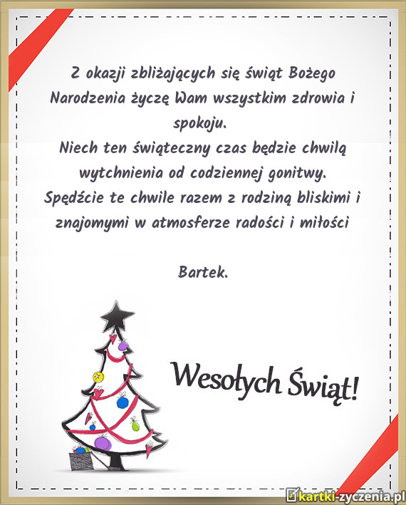 Składamy sobie dzisiaj życzenia - Gotowa Kartka bożonarodzeniowa