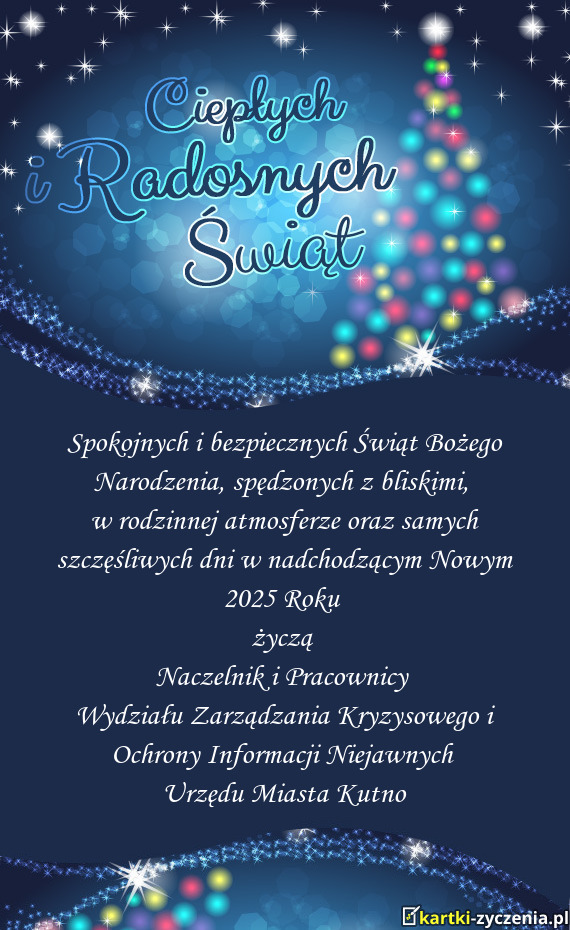 Spokojnych i bezpiecznych Świąt Bożego Narodzenia, spędzonych z bliskimi,