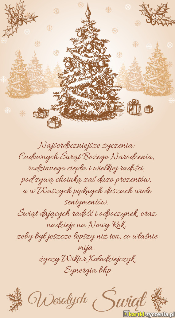 Spokojnych i radosnych Świat Bożego Narodzenia oraz Wszystkiego Najlepszego na Nowy 2024 Rok wraz - Gotowa Kartka bożonarodzeniowa
