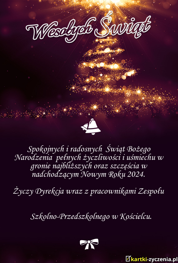 Spokojnych i radosnych Świąt Bożego Narodzenia pełnych życzliwości i uśmiechu w gronie najbliższych oraz szczęścia w nadchodzącym Nowym Roku 2024.