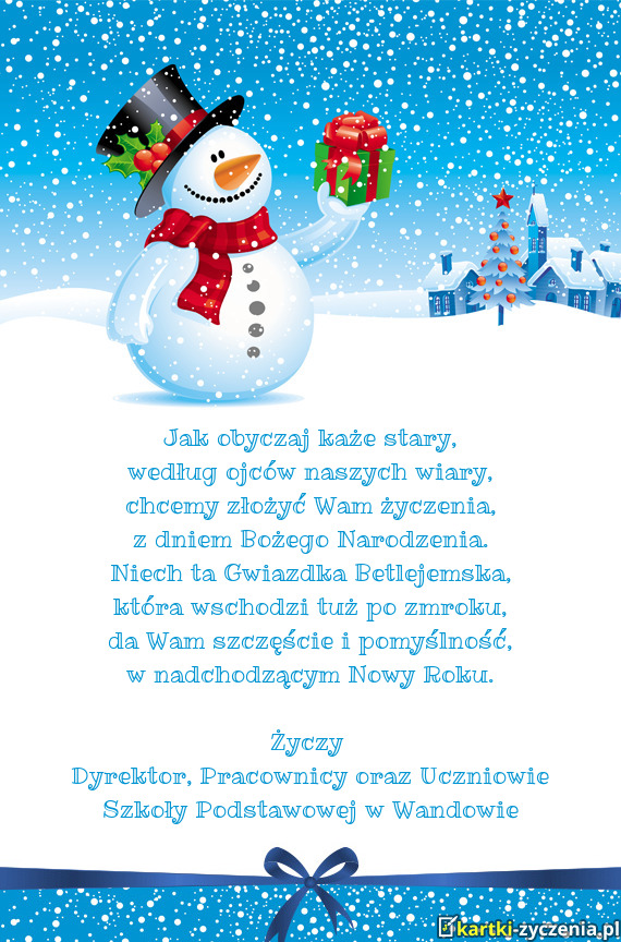 Spokojnych i radosnych świąt Bożego Narodzenia spędzonych w gronie najbliższych osób, a także zdrowia, szczęścia i pomyślności w nadchodzącym Nowym Roku,