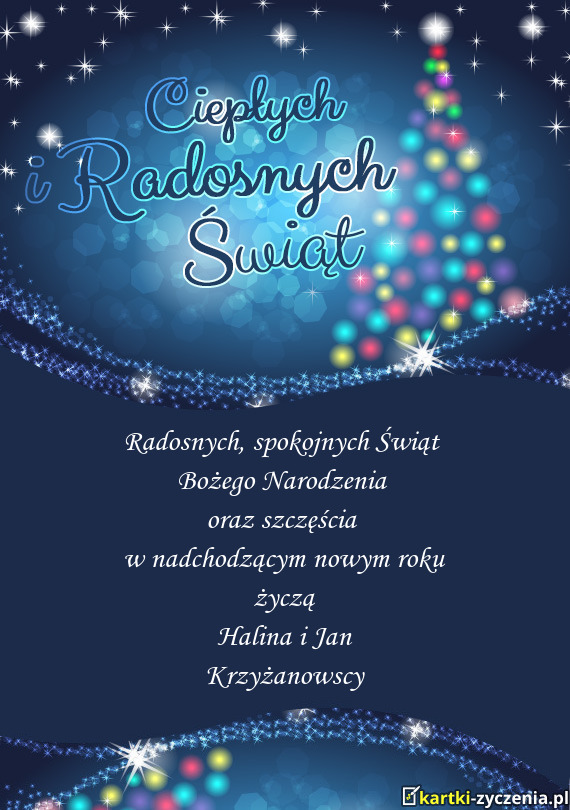 Spokojnych Świąt Bożego Narodzenia oraz szczęścia w nadchodzącym nowym roku życzą H - Gotowa Kartka bożonarodzeniowa
