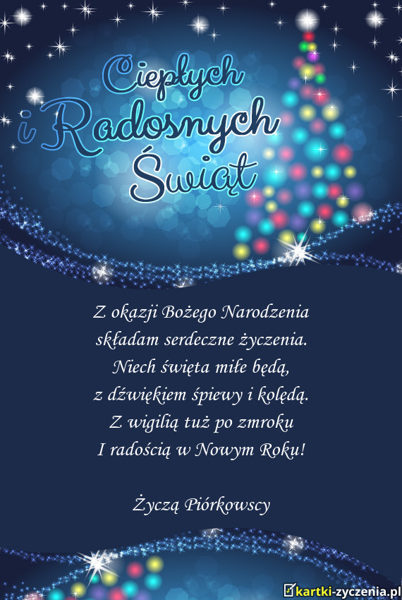 Spokojnych Świąt Bożego Narodzenia, spędzonych w gronie najbliższych,